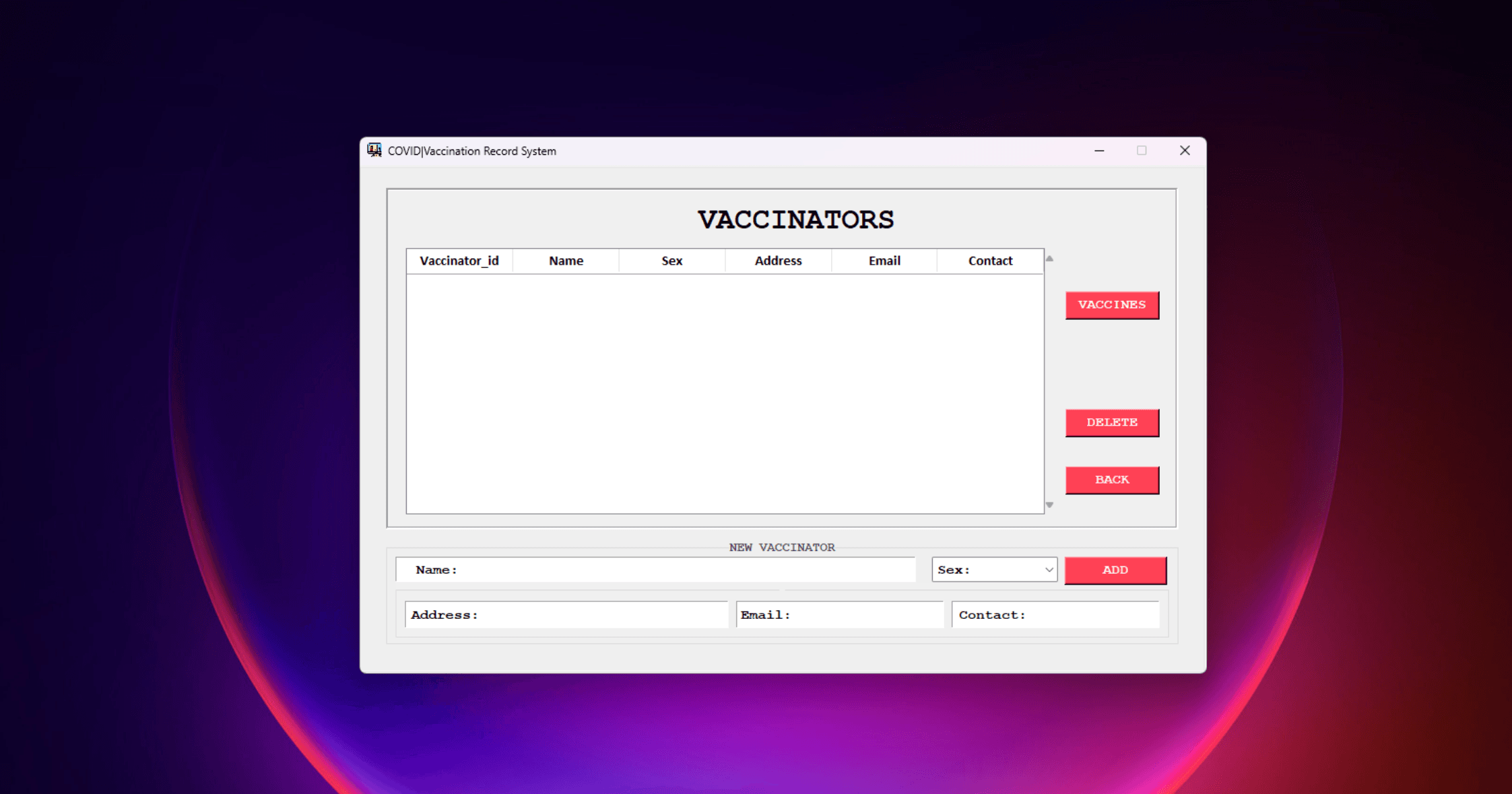 Backend DevelopmentThis efficiently organizes and tracks vaccination details for comprehensive monitoring and verification purposes.